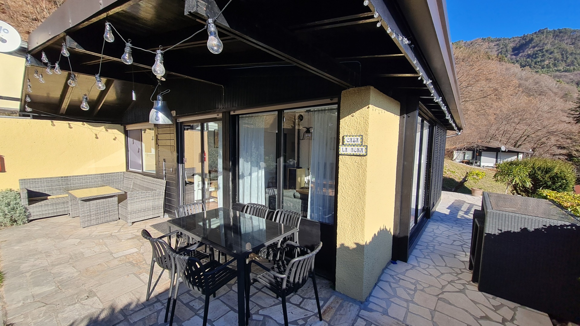 Der Bungalow verfügt über eine große Rasenfläche und 2 Sitzgelegenheiten. Eine schöne Veranda bietet Schatten und Schutz vor Wind und Wetter.