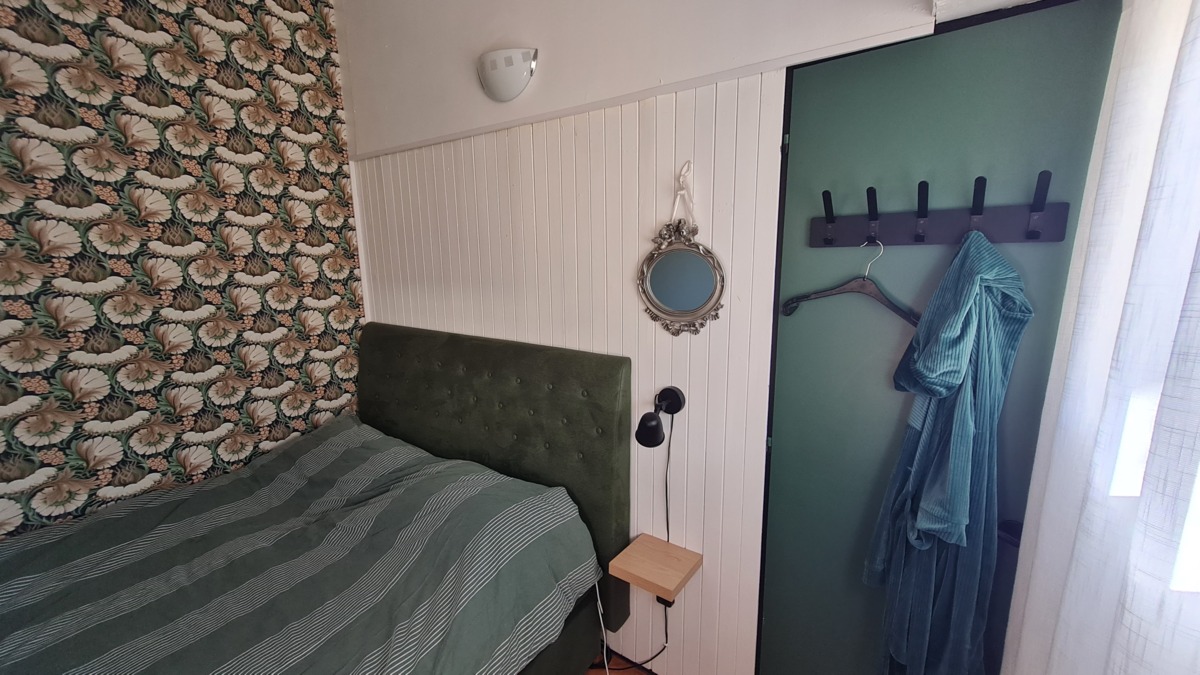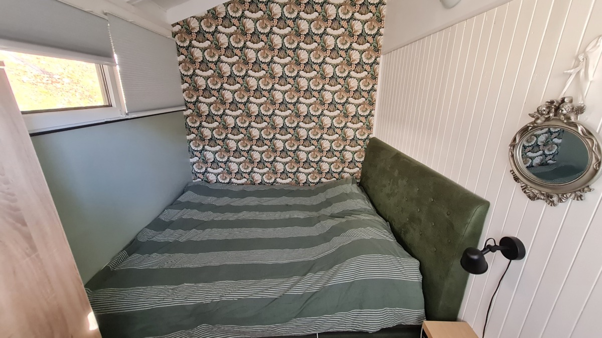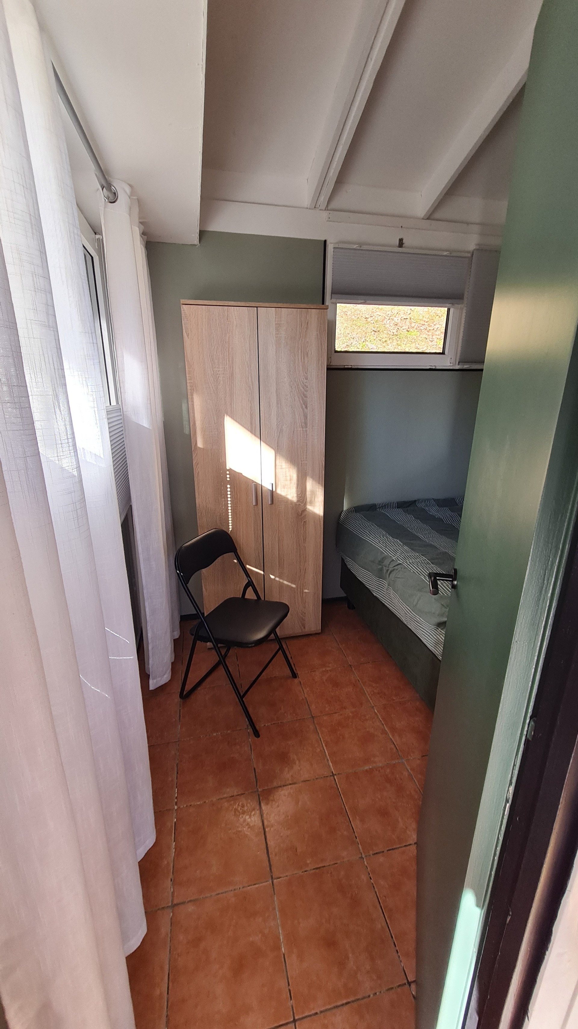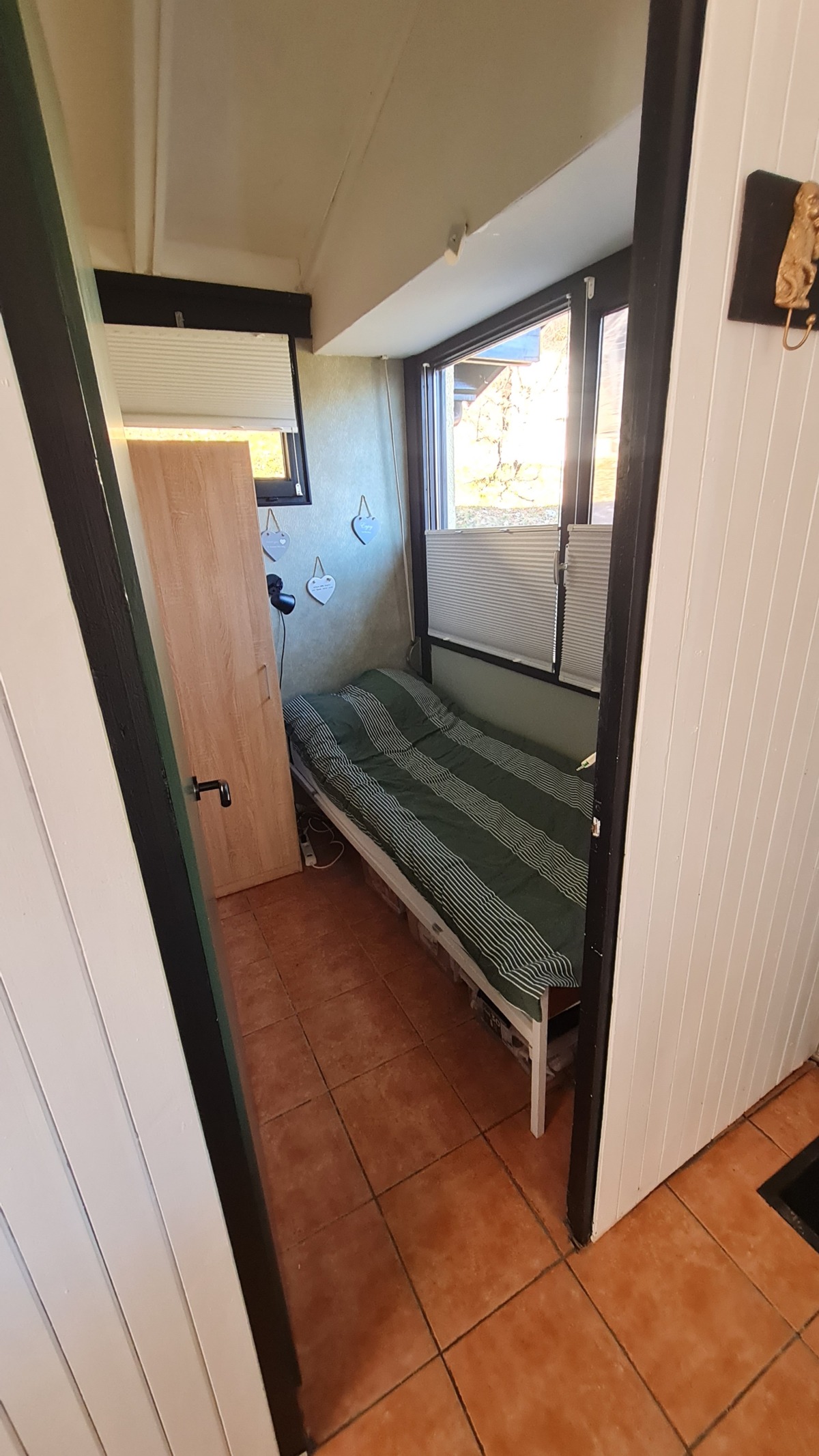 Es gibt 3 Schlafzimmer, eines mit einem Doppelbett, eines mit einem Etagenbett und eines mit zwei Einzelbetten. Alle Zimmer verfügen über Stauraum.