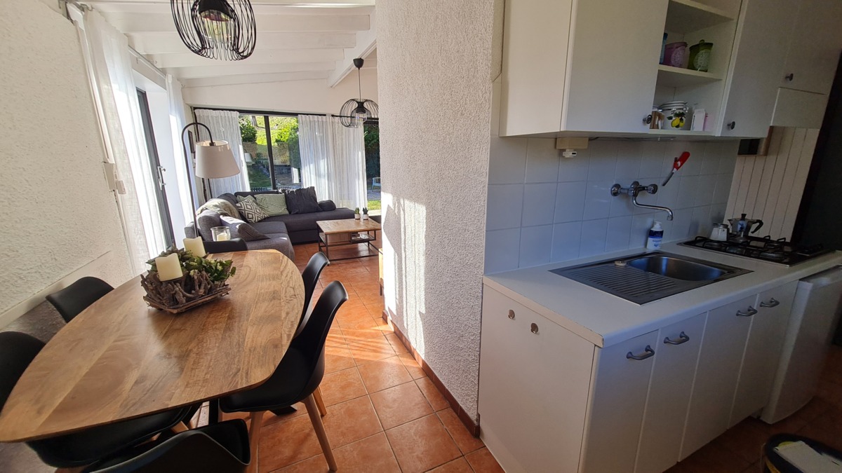 Dieser Bungalow befindet sich im oberen Teil des Parks, nur wenige Gehminuten von den Einrichtungen entfernt. Großes Grundstück/Garten mit Rasenfläche und Natursteinpflaster.